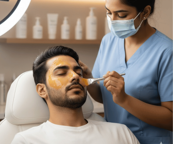 Professional-grade chemical solutions applied to exfoliate and improve skin texture, reducing blemishes and fine lines.